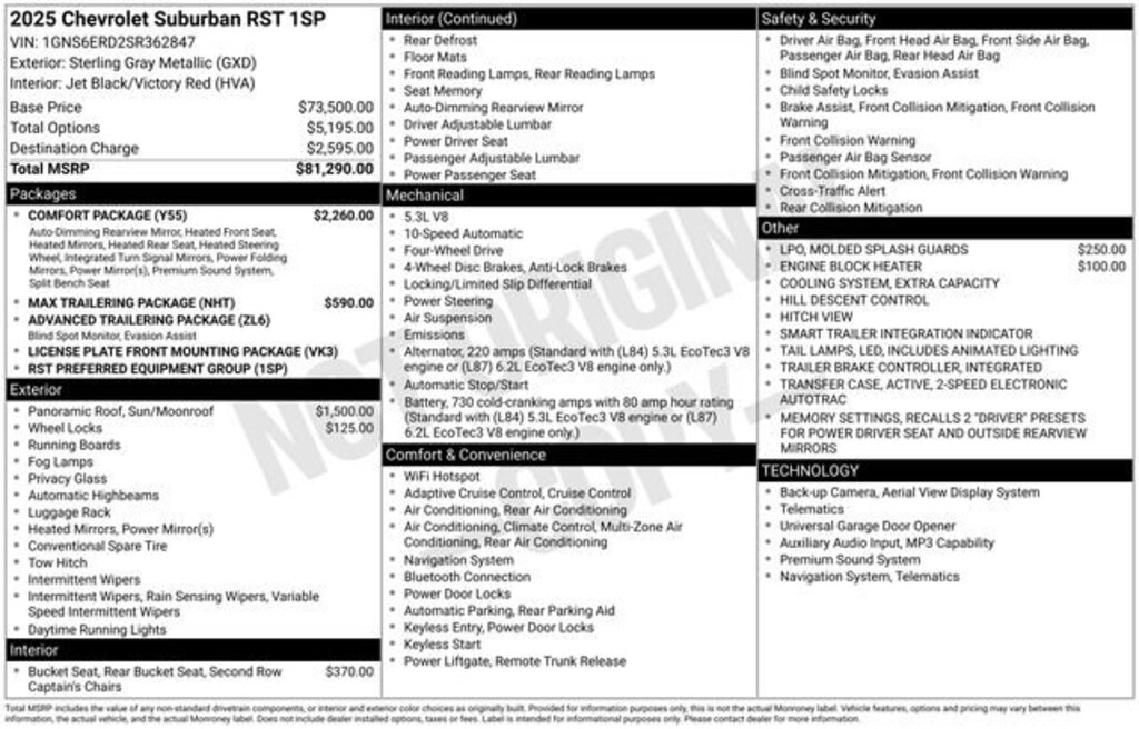OK, so I have owned 2 previous suburbans (2002 & 2013), so the 25 is an amazing upgrade to both of these! First of all, we do a lot of highway miles and the ride is simply amazing! It rides more like a luxury sedan than a truck. Since this is our primary vacation vehicle, we were careful to order 18 inch wheels, as they have a much smoother ride versus the larger ones. I also love all of the new cameras, which is a big help in tight situations. Also, the adaptive cruise control and lane assist make long road trips easier and safer as well. I also love the new exterior design features, particularly the front grill and the aerodynamic wings on either side of the rear window. I'm a bit surprised that those small design features have really updated and enhanced the look so much. The only real disappointment, so far, is the owners manual was really poorly done. Information is difficult to find, nonexistent and they even neglected to put in the required scheduled maintenance requirements (what were they thinking?). Overall, our first impressions on this vehicle have been superb and I would definitely recommend it to others who need a large family/vacation vehicle!…