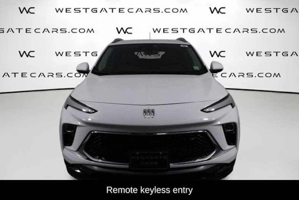 Beyond its dynamic capabilities, the Encore GX Sport Touring pampers you with a wealth of premium amenities. Enjoy the convenience of wireless smartphone integration, the comfort of dual-zone automatic climate control, and the confidence of advanced safety features like Automatic Emergency Braking and Lane Keep Assist. With its sleek, sculpted exterior and refined interior, this Buick crossover exudes an air of sophistication that is sure to turn heads.