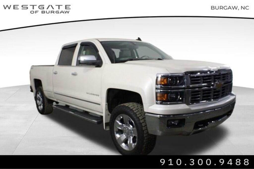 Westgate in Burgaw, NC offers reliable, carefully selected vehicles and a customer experience thatâs easy, transparent, and designed to give you confidence in every purchase.White Diamond Clearcoat 2015 Chevrolet Silverado 1500 LTZ 2LZ LTZ 2LZ6-Speed Automatic Electronic with Overdrive, 4WD, Cocoa/Dune Leather, Leather Wrapped Heated Steering Wheel, LTZ Plus Package, Power Adjustable Pedals, Trailering Equipment, 110-Volt AC Power Outlet, 150 Amp Alternator, 4-Wheel Disc Brakes, 4.2 Diagonal Color Display Driver Info Center, 40/20/40 Front Split Bench Seat, 6 Speaker Audio System, 6 Speakers, ABS brakes, Air Conditioning, Alloy wheels, AM/FM radio: SiriusXM, Auto-dimming door mirrors, Auto-Dimming Inside Rear-View Mirror, Auto-dimming Rear-View mirror, Automatic temperature control, Auxiliary External Transmission Oil Cooler, Bluetooth® For Phone, Bodyside moldings, Bose Speaker System, Brake assist, Bumpers: chrome, CD player, Chrome Bodyside Moldings, Chrome Cap Power-Adjustable Heated Outside Mirrors, Chrome Door Handles, Chrome Grille w/Chrome Surround, Chrome Mirror Caps, Color-Keyed Carpeting w/Rubberized Vinyl Floor Mats, Compass, Deep-Tinted Glass, Delay-off headlights, Driver & Front Passenger Illuminated Vanity Mirrors, Driver door bin, Driver vanity mirror, Dual front impact airbags, Dual front side impact airbags, Dual-Zone Automatic Climate Control, Electric Rear-Window Defogger, Electronic Stability Control, Emergency communication system: OnStar Directions & Connections, Exterior Parking Camera Rear, EZ Lift & Lower Tailgate, Front anti-roll bar, Front Center Armrest w/Storage, Front Chrome Bumper, Front dual zone A/C, Front fog lights, Front Halogen Fog Lamps, Front License Plate Kit, Front reading lights, Front wheel independent suspension, Fully automatic headlights, Garage door transmitter, Heated door mirrors, Heated Driver & Front Passenger Seats, Heated front seats, Heavy-Duty Rear Locking Differential, Illuminated entry, Leather Appointed Seat Trim, Leather Wrapped Steering Wheel w/Cruise Controls, Low tire pressure warning, Manual Tilt/Telescoping Steering Column, Memory seat, Occupant sensing airbag, OnStar 6 Months Directions & Connections Plan, OnStar w/4G LTE, Outside temperature display, Overhead airbag, Overhead console, Panic alarm, Passenger door bin, Passenger vanity mirror, Power door mirrors, Power driver seat, Power passenger seat, Power Sliding Rear Window, Power steering, Power windows, Power Windows w/Driver Express Up, Premium audio system: Chevrolet MyLink, Radio data system, Radio: AM/FM 8 Diagonal Color Touch Screen, Rear 60/40 Folding Bench Seat (Folds Up), Rear Chrome Bumper, Rear reading lights, Rear seat center armrest, Rear step bumper, Rear Vision Camera w/Dynamic Guide Lines, Rear Wheelhouse Liners, Rear window defroster, Remote Keyless Entry, Remote keyless entry, Remote Vehicle Starter System, Security system, Single Slot CD/MP3 Player, SiriusXM Satellite Radio, Speed control, Speed-sensing steering, Split folding rear seat, Steering Wheel Audio Controls, Steering wheel mounted audio controls, Tachometer, Telescoping steering wheel, Theft Deterrent System (Unauthorized Entry), Tilt steering wheel, Traction control, Trip computer, Turn signal indicator mirrors, Ultrasonic Front & Rear Park Assist, Universal Home Remote, Variably intermittent wipers, Voltmeter, Wheels: 20 x 9 Chrome, 6-Speed Automatic Electronic with Overdrive, 4WD, Cocoa/Dune Leather, Leather Wrapped Heated Steering Wheel, LTZ Plus Package, Power Adjustable Pedals, Trailering Equipment.Clean CARFAX.Choosing Westgate in Burgaw, NC means more than just buying a car itâs gaining a trusted partner committed to quality, value, and customer satisfaction. With a wide selection of new Chevrolet, Chrysler, Jeep, Dodge, Ram, and pre-owned vehicles, competitive pricing, and a hassle-free buying process, Westgate is the top choice for car shoppers across Burgaw, Wilmington, a