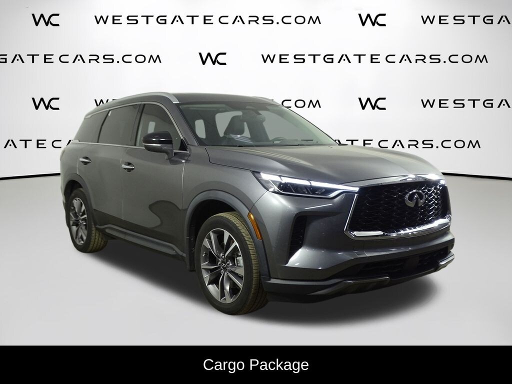 This stunning 2022 INFINITI QX60 LUXE offers a remarkable blend of style, technology, and versatility. Boasting a sleek gray exterior and a spacious, well-appointed cabin, this luxurious SUV is ready to elevate your driving experience.
