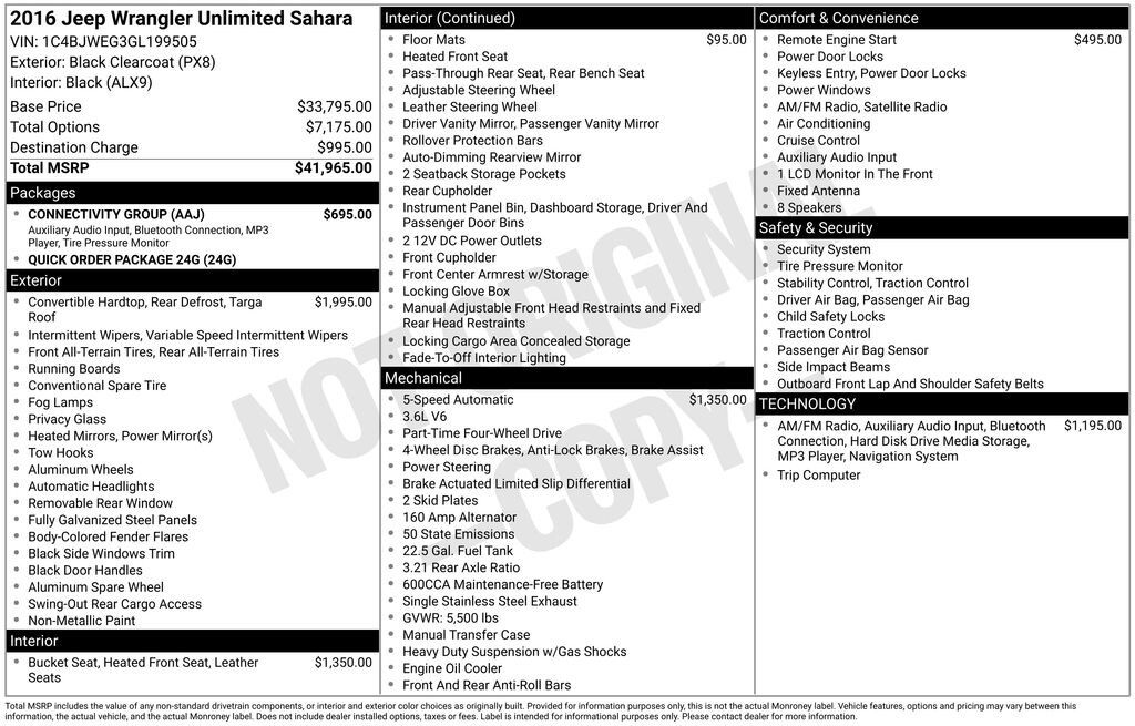 Used 2016 JeepWrangler JK Unlimited Unlimited Sahara