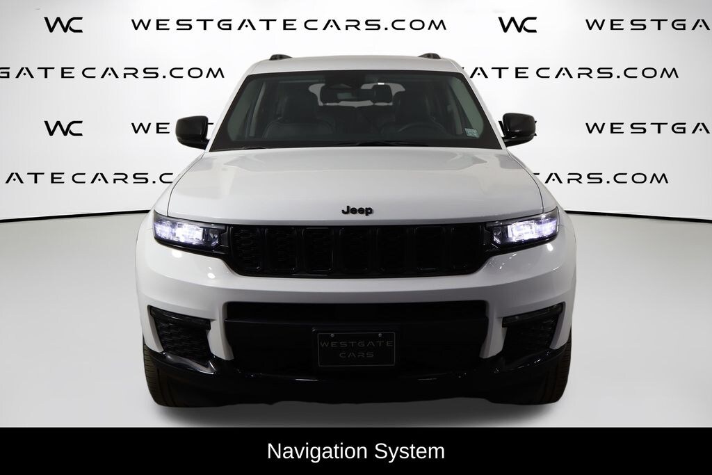 The exterior of this Grand Cherokee L is finished in a stunning White color, complemented by the Black Appearance Package that adds a touch of modern flair. Gloss Black accents, including the 20-inch wheels, give this SUV a commanding presence on the road.