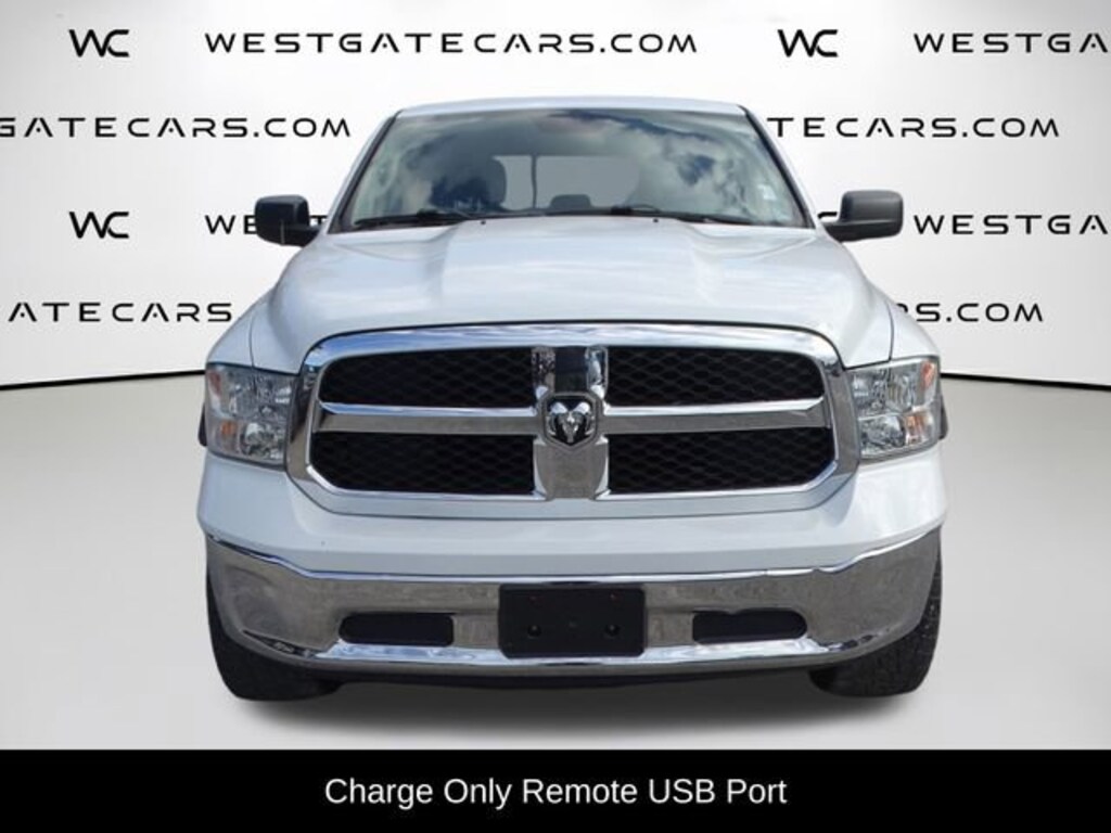 Inside, you'll find a well-appointed cabin with thoughtful amenities, including a 5-inch touchscreen infotainment system, USB connectivity, and a 40/20/40 split-bench front seat with a center armrest. With seating for up to six, this Ram 1500 offers ample room for both work and family duties.