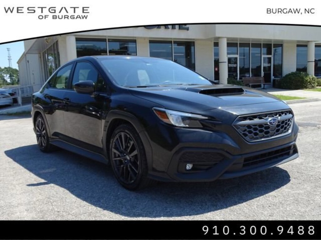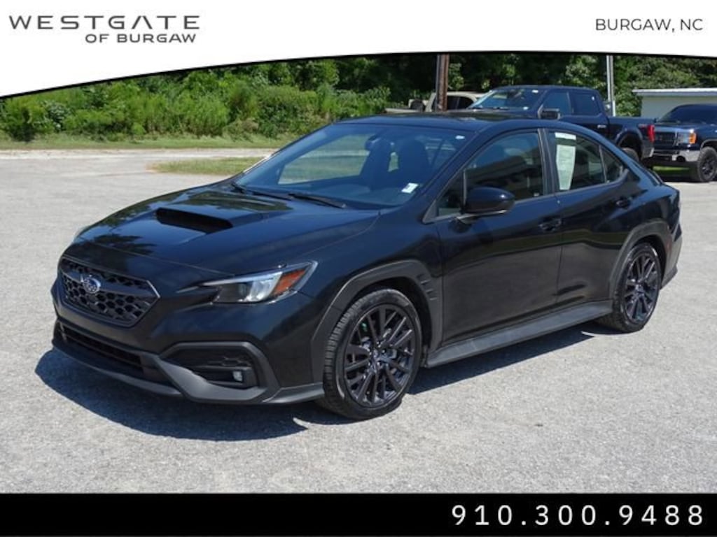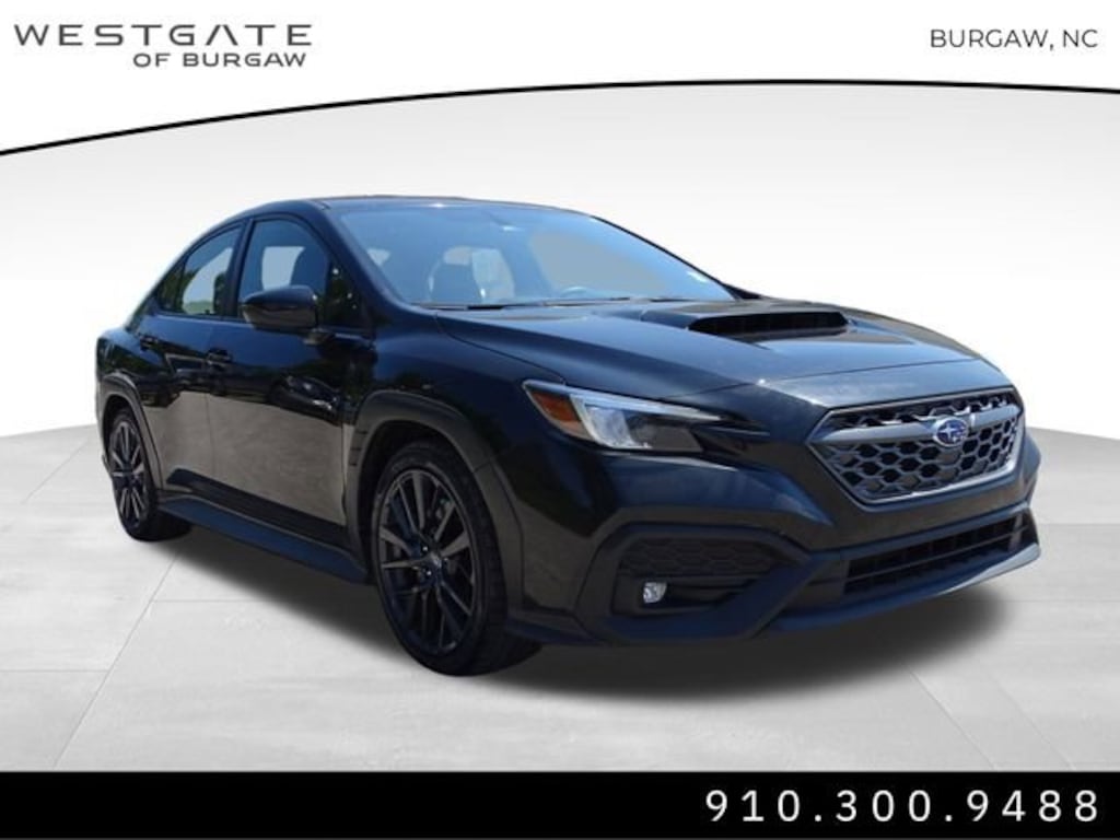 Westgate in Burgaw, NC offers reliable, carefully selected vehicles and a customer experience thatâs easy, transparent, and designed to give you confidence in every purchase.Crystal Black Silica 2022 Subaru WRX Premium Premium4-Wheel Disc Brakes, 6 Speakers, ABS brakes, Air Conditioning, All-Weather Floor Liners, Alloy wheels, AM/FM radio: SiriusXM, Auto High-beam Headlights, Auto-dimming Rear-View mirror, Automatic temperature control, Brake assist, Bumpers: body-color, Cargo Tray, Cloth Upholstery w/Red Stitching, Driver door bin, Driver vanity mirror, Dual front impact airbags, Dual front side impact airbags, Electronic Stability Control, Emergency communication system: STARLINK Safety and Security (Subscription Required), Exterior Parking Camera Rear, Four wheel independent suspension, Front anti-roll bar, Front Bucket Seats, Front Center Armrest, Front dual zone A/C, Front fog lights, Front reading lights, Fully automatic headlights, Heated door mirrors, Heated front seats, Illuminated entry, Knee airbag, Leather Shift Knob, Leather steering wheel, Low tire pressure warning, Occupant sensing airbag, Outside temperature display, Overhead airbag, Overhead console, Panic alarm, Passenger door bin, Passenger vanity mirror, Performance Design Heated Front Bucket Seats, Power door mirrors, Power steering, Power windows, Radio data system, Radio: Subaru STARLINK 11.6 Multimedia Plus Sys, Rear anti-roll bar, Rear seat center armrest, Rear Seatback Protector, Rear window defroster, Remote keyless entry, Security system, Speed control, Speed-sensing steering, Split folding rear seat, Spoiler, Sport steering wheel, Standard Model (6MT), STARLINK/Apple CarPlay/Android Auto, Steering wheel mounted audio controls, Sunshade - Windshield, Tachometer, Telescoping steering wheel, Tilt steering wheel, Traction control, Trip computer, Variably intermittent wipers, Wheels: 18 x 8.5 Dark Gray Finish Alum Alloy.Choosing Westgate in Burgaw, NC means more than just buying a car itâs gaining a trusted partner committed to quality, value, and customer satisfaction. With a wide selection of new Chevrolet, Chrysler, Jeep, Dodge, Ram, and pre-owned vehicles, competitive pricing, and a hassle-free buying process, Westgate is the top choice for car shoppers across Burgaw, Wilmington, and all of southeastern North Carolina.