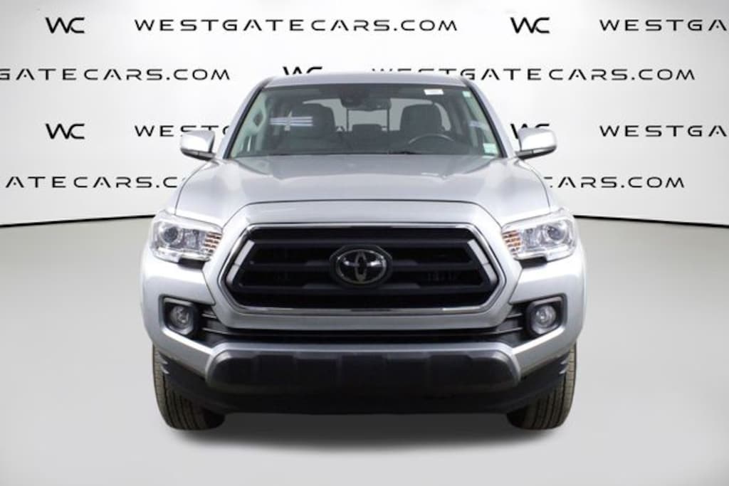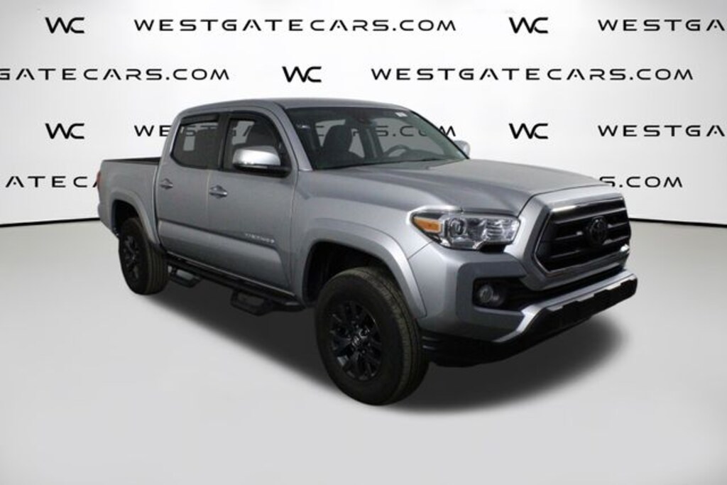 The Tacoma's impressive list of standard features includes automatic climate control, a premium audio system with SiriusXM radio, and a rearview camera with dynamic parking guidelines. The available Technology Package adds even more convenience and safety with a Blind Spot Monitor, Rear Cross Traffic Alert, and an auto-dimming rearview mirror. And with its rugged good looks, the Tacoma's silver exterior is sure to turn heads wherever you go.