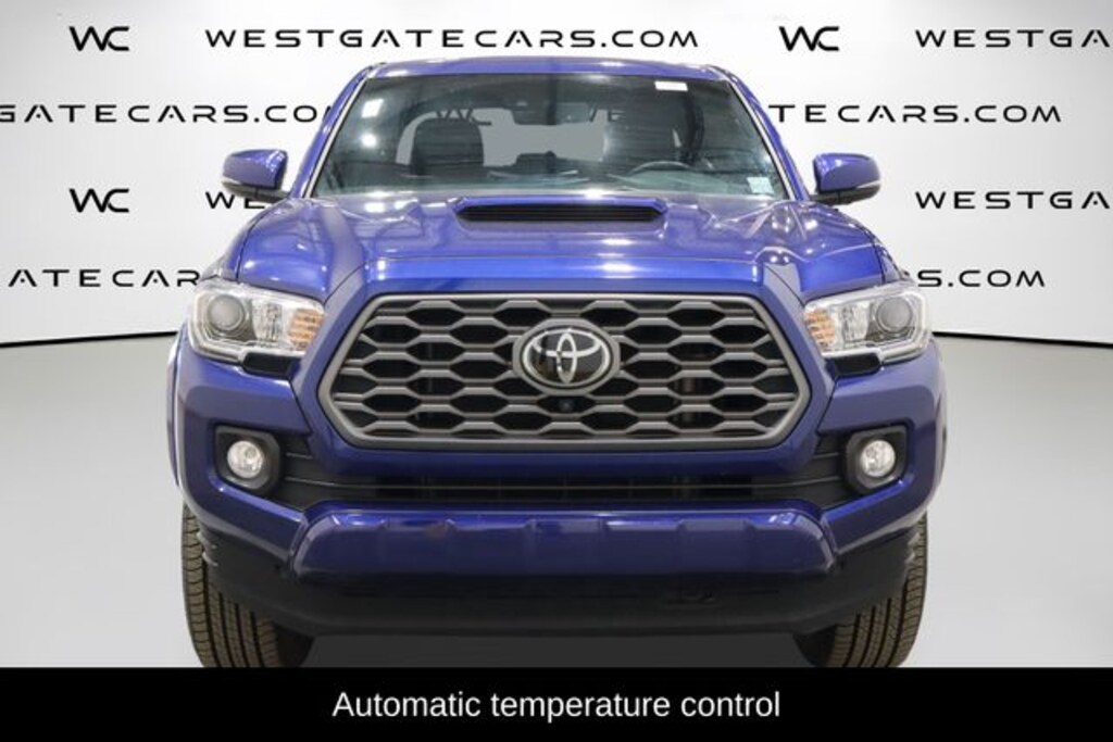 Wrapped in a stunning Blue Crush Metallic exterior, this Tacoma stands out from the crowd with its bold, aggressive styling. The TRD Sport package adds a touch of sportiness with unique exterior accents and 17-inch machined alloy wheels, giving this truck a commanding presence on the road.